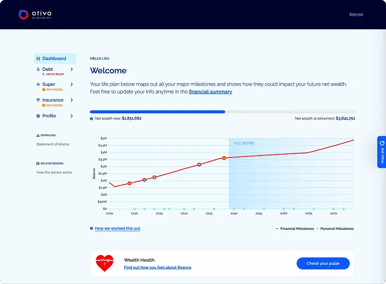 Life doesn't come with instructions. But deep down, we all just want to feel confident about money. Do I have enough? Am I making the most of my super? Am I covered if things go wrong? With Otivo, you get a personalised, practical plan to help you make the right decisions for today and tomorrow.